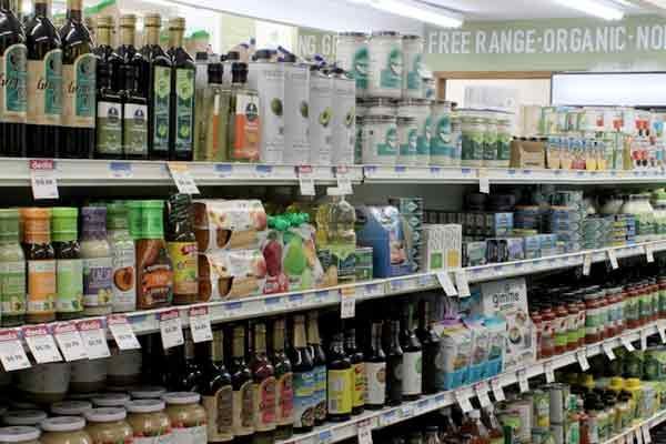 organic vegetables, fruit, pizzas, breads, ice cream
